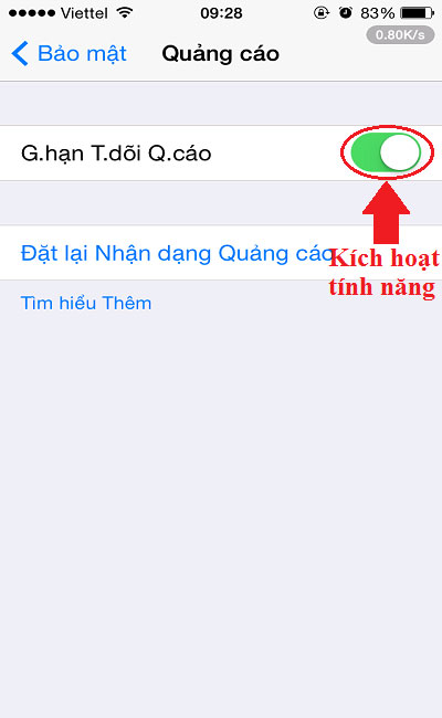 Cách khắc phục: Truy nhập vào Cài đặt > Bảo mật > Quảng cáo và kích hoạt chế độ "G.hạn T.dõi Q.cáo".