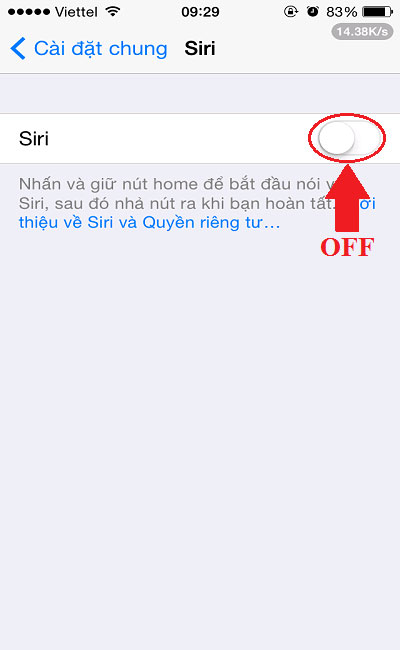 Cách khắc phục: Cho Siri "nghỉ ngơi" bằng cách, vào Cài đặt > Cài đặt chung > Siri và lăn thanh trượt về trạng thái OFF.