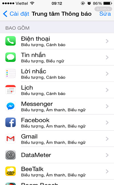 Cách khắc phục: Vào Cài đặt > Trung tâm Thông báo, rồi kéo xuống mục "Bao gồm" để tùy chọn ứng dụng. Lưu ý chỉ nên kích hoạt tính năng tự động thông báo trên những ứng dụng bạn thực sự cần.