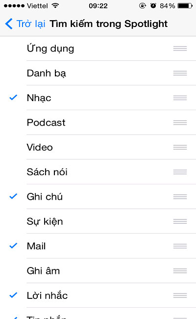 Cách khắc phục: Truy nhập vào Cài đặt > Cài đặt chung > Tìm kiếm trong Spotlight và bỏ chọn những chuyên mục không cần thiết xuất hiện khi tìm kiếm.