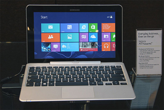 ATIV Smart PC Pro chạy hệ điều hành Windows 8 Pro dành cho PC, cho phép người dùng dễ dàng cài đặt bất kì các phần mềm tương thích với hệ điều hành Windows từ Windows XP đến Windows 7 mà không bị hạn chế như chiếc ATIV Tab (sử dụng hệ điều hành Windows RT).
