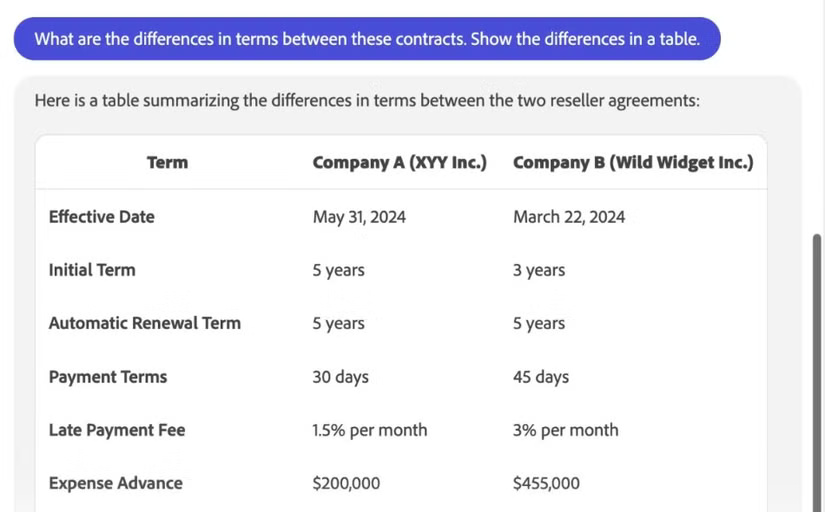 Khả năng đọc hợp đồng thông minh là một bổ sung đáng hoan nghênh cho một công cụ đã được tìm kiếm trong Acrobat. Hàng triệu người bình thường, chủ doanh nghiệp và chủ SMB trên toàn thế giới sử dụng Acrobat hàng ngày để quản lý tài liệu. Một công cụ thông minh giúp tóm tắt, hiểu và so sánh các văn bản pháp lý và hợp đồng là sự bổ sung có giá trị cho bộ công cụ.