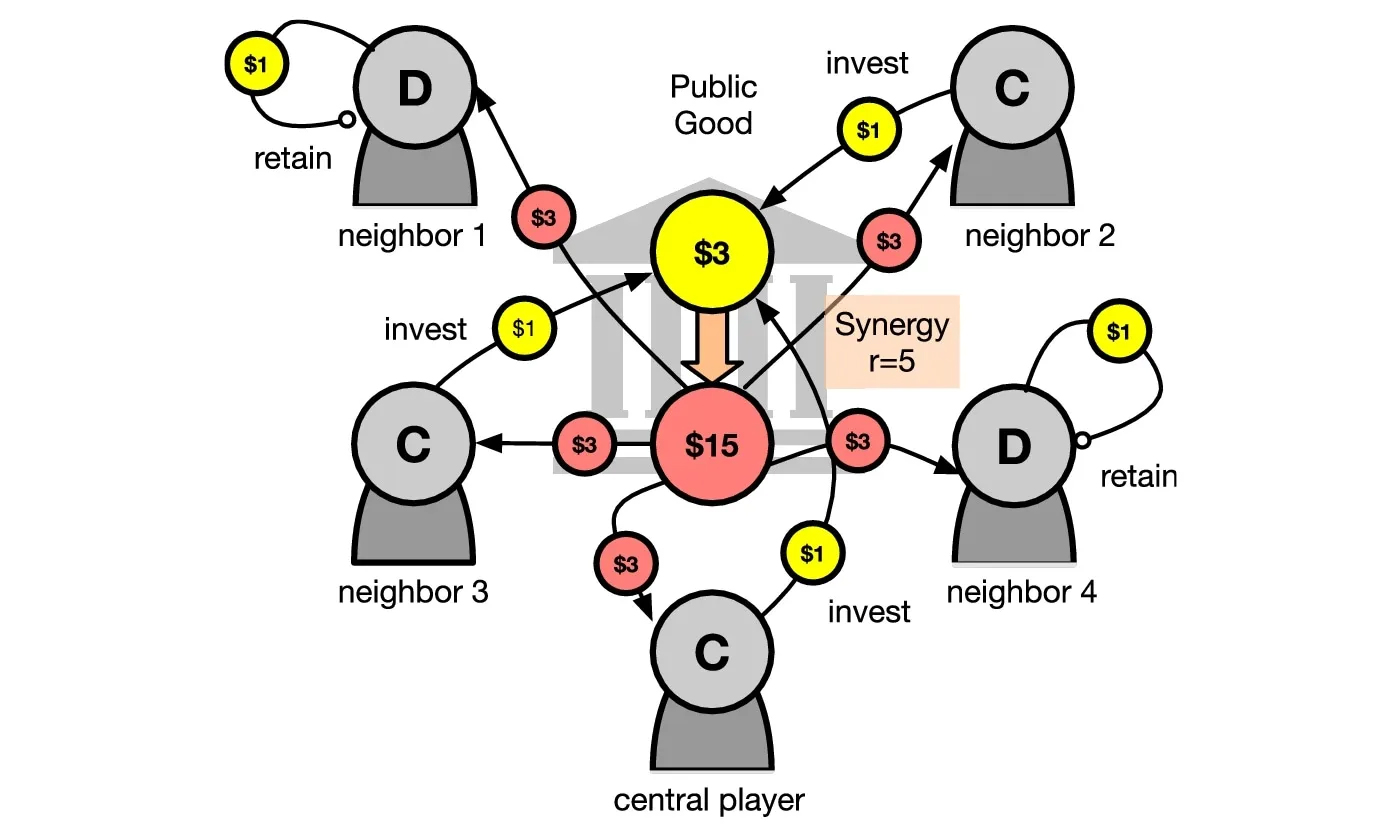 Để kiểm chứng liệu AI có thể cải thiện mức độ hợp tác giữa con người hay không, nhóm nghiên cứu sử dụng mô hình “trò chơi hàng hóa công” (public goods game). Trong trò chơi này, mỗi người chơi có thể đóng góp vào một quỹ chung để mang lại lợi ích cho cả nhóm, hoặc giữ lại phần của mình.