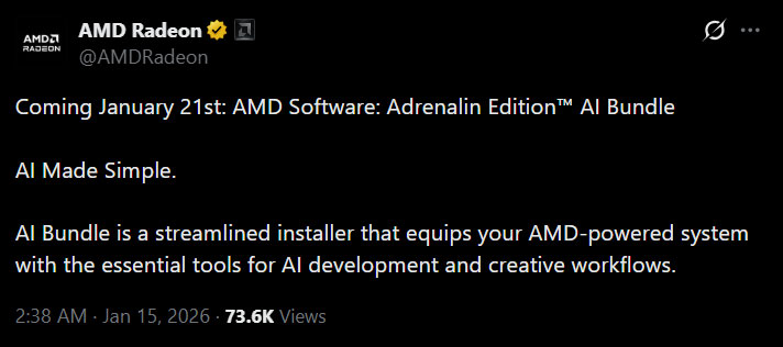 Hiện tại, AMD chưa công bố danh sách chi tiết các công cụ có mặt trong AI Bundle, ngoài việc mô tả chung là những “công cụ thiết yếu” cho phát triển và sáng tạo AI. Toàn bộ thông tin cụ thể sẽ được hé lộ khi bộ cài chính thức ra mắt vào ngày 21/1.