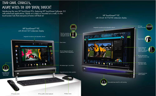 Thuộc dòng PC cảm ứng sử dụng công nghệ đa điểm, lại sở hữu một cấu hình mạnh, cài đặt sẵn Window 7 bản quyền cùng một thiết kế rất ấn tượng, HP TouchSmart 300 và 600 dự báo sẽ trở thành tâm điểm trong mùa mua sắm cuối năm nay.