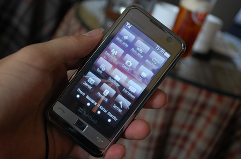Chiếc di động này được xách tay từ Nhật Bản, máy có màn hình cảm ứng WVGA rộng 3,3 inch, độ phân giải cao gấp 4 lần chiếc Omnia đang bán trên thị trường Việt Nam.  Cạnh phải của máy với nút bấm xem truyền hình (dịch vụ này chỉ có tại Nhật Bản) và phím chụp ảnh, khóa màn hình.