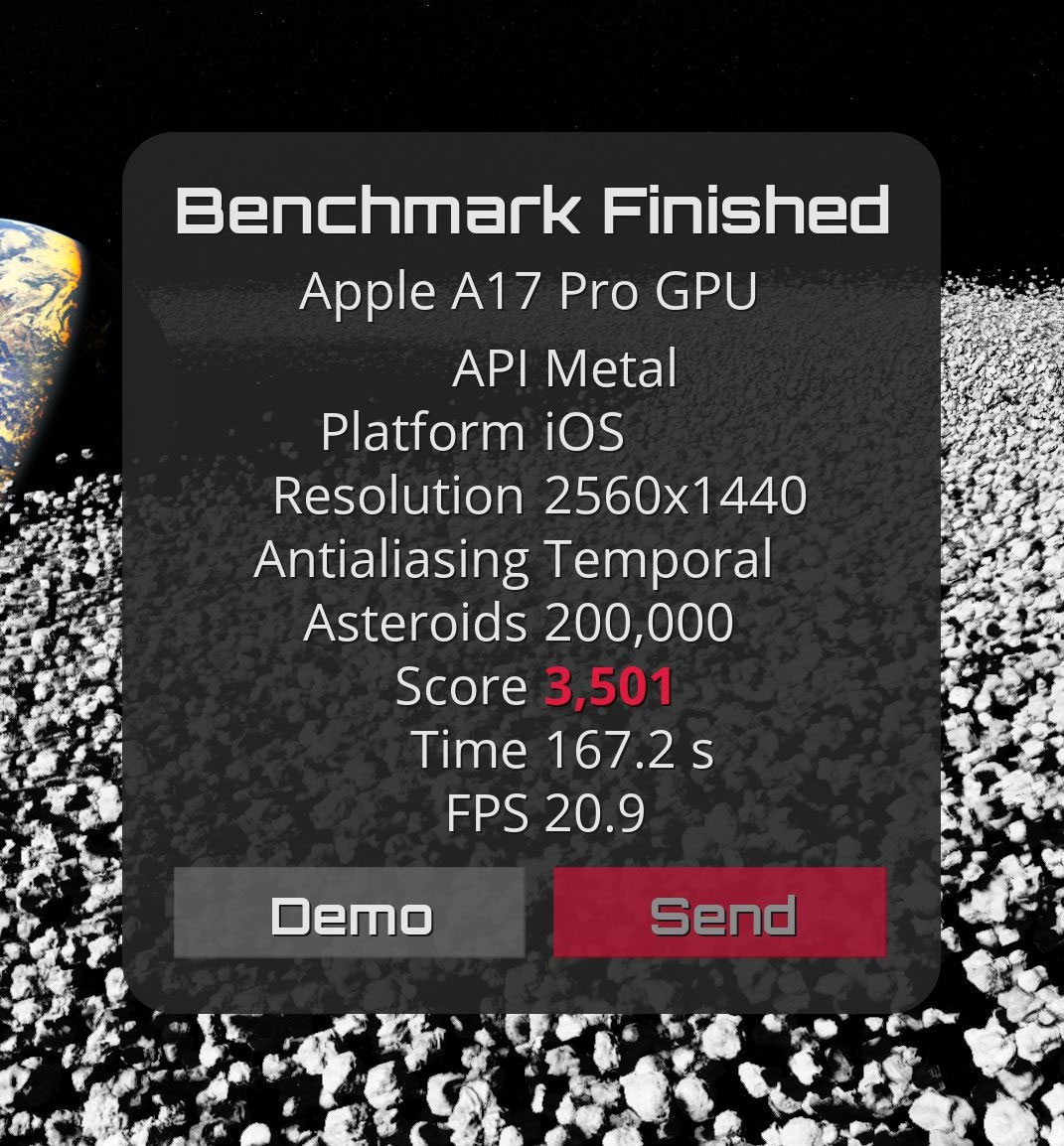 Tuy nhiên, sau khi xem xét sự khác biệt về kết quả, nhiều người sẽ cho rằng chúng có thể nằm trong phạm vi sai số. A17 Pro đạt được số điểm 3.501, trong khi Snapdragon X Elite đạt 3.421. Nếu bạn làm một phép toán đơn giản, thì đó chỉ là sự chênh lệch 2,34%. A17 Pro hoàn thành bài kiểm tra GPU GravityMark với 20,9FPS, trong khi Snapdragon X Elite chậm hơn một chút ở mức 20,5FPS.