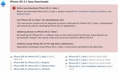 Hiện phiên bản iPhone 2.1 thử nghiệm chỉ được dành riêng cho cộng đồng phát triển phần mềm thử nghiệm chứ không được phát hành rộng rãi.