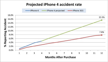 Theo một nghiên cứu mới đây của hãng SquareTrade, số iPhone 4 bị hỏng cao hơn 62% so với iPhone 3GS trong vòng 4 tháng đầu tiên. Trong đó, số vụ liên quan đến vỡ màn hình chiếm đến 82%.