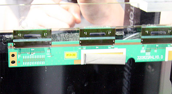 Sau công đoạn này, một tab IC nhỏ giống một đầu cuộn phim dùng trong điều khiển giao tiếp giữa màn hình và các thiết bị điện tử khác sẽ được gắn vào. Một bảng mạch nhỏ sau đó sẽ được gắn vào tab IC và toàn bộ các phần này sau này sẽ được che bằng khung TV.