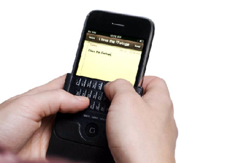 iPhone bị nhiều người chê khó soạn thảo bởi không có bàn phím cứng, iTwinge iPhone keyboard có giá 30 USD là thiết bị xóa bỏ nhược điểm này.