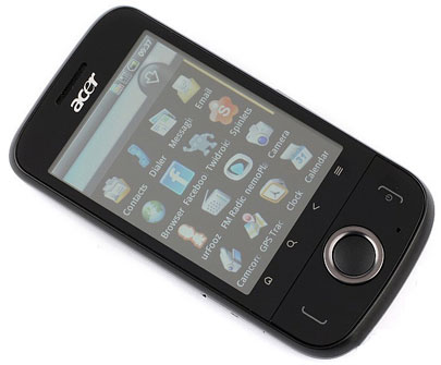 beTouch E110 của Acer có kiểu dáng nhỏ hơn, các đường nét khá suôn mượt. Máy có kích thước 103,5 x 54 x 13,4 mm, dày hơn Optimus của LG, trọng lượng là 105 gram.