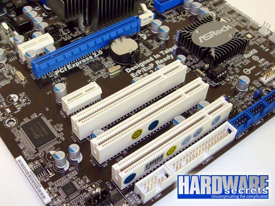 - Slots: một khe PCI Express 2.0 x16, hai khe PCI Express x1 và ba khe PCI chuẩn.