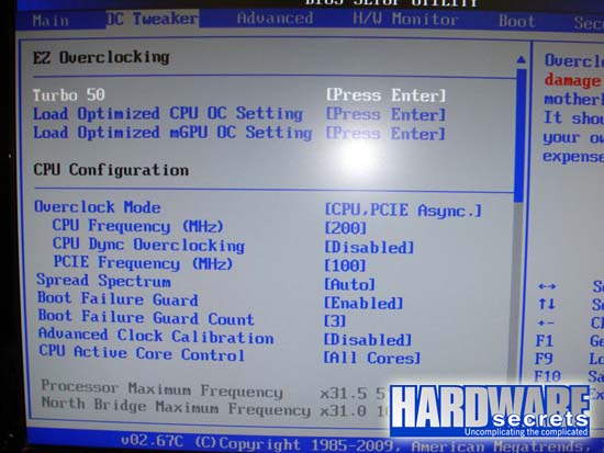Dưới đây là danh sách các tùy chọn ép xung chính của ASRock 880GXH/USB3 (1.10 BIOS).