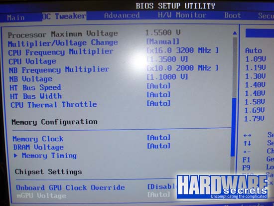 - Điện áp bộ nhớ: từ 1.3 V đến 2.05 V với bước điều chỉnh 0.05 V