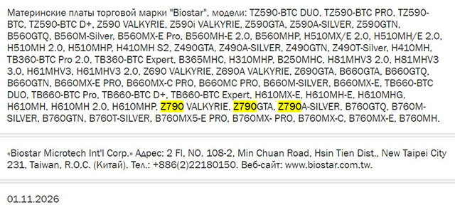 Biostar có vẻ như là nhà cung cấp bo mạch chủ lớn đầu tiên bắt đầu làm việc trên các dòng bo mạch thế hệ tiếp theo này, và đã đăng ký chứng nhận sản phẩm với Ủy ban Kinh tế Á-Âu (EEC). Thông tin về một số mẫu bo mạch chủ này, bao gồm các model thuộc dòng Z790 và Z760, vừa bất ngờ được tìm thấy trên cổng thông tin của EEC, như có thể thấy trong ảnh chụp màn hình dưới đây.