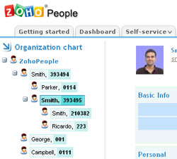 Công cụ miễn phí dành cho tối đa 10 người dùng này sẽ mang lại cho người quản lý nhân sự cổng thông tin trung tâm để lưu trữ dữ liệu nhân viên, và có thể lập thành biểu đồ dạng nhánh cây. Zoho People giúp quản lý tất cả những công việc liên quan tới nhân sự, từ tuyển dụng, phỏng vấn, đề nghị lương, và tự động đưa ra thông báo cho người dùng. Các tài khoản miễn phí sẽ nhận được 250MB lưu trữ, nhưng nếu trả thêm 19USD/tháng thì gói 10 người dùng sẽ có thêm chức năng mã hóa SSL.