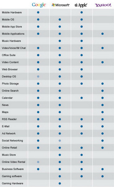 Cả Google, Microsoft, Apple và Yahoo đang vươn tay đầu tư vào hàng loạt lĩnh vực khác nhau nhằm chiếm trọn những thị trường tiềm năng.