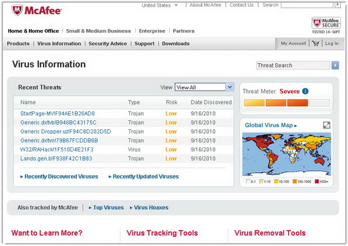 Đây là một trang cung cấp thông tin về virus mới của hãng phần mềm bảo mật danh tiếng McAfee. Do đó, nguồn thông tin tại đây khá phong phú và rất có giá trị.