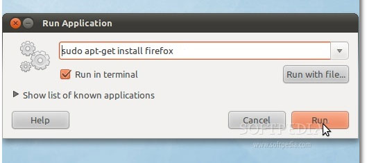 Nhập vào password của bạn khi được yêu cầu và nhấn nút Ok. Một cửa sổ terminal sẽ xuất hiện sau vài giây rồi tự động đóng lại. Nhấn phím ALT + F2 lần nữa, đánh dấu check vào tùy chọn "Run in terminal" và paste vào lệnh sau trong hộp thoại "Run Application":