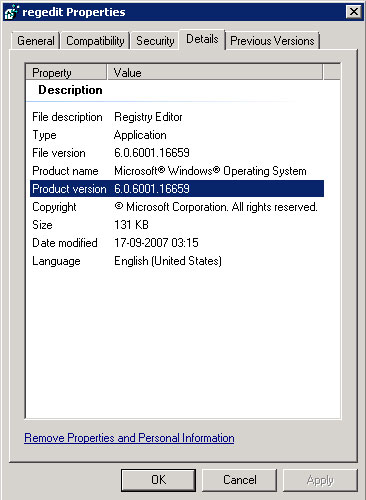 Để có được số này, bạn mở thuộc tính của file regedit.exe