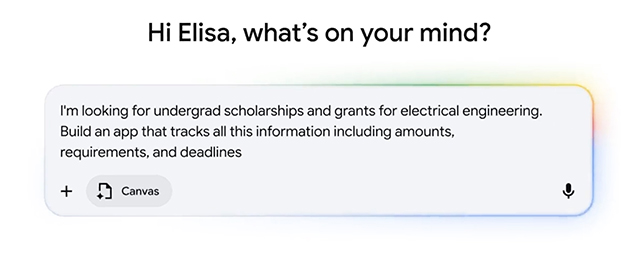 Nếu muốn tạo một công cụ hoặc bảng điều khiển riêng, bạn chỉ cần chọn tùy chọn Canvas trong menu công cụ của AI Mode rồi mô tả những gì mình muốn xây dựng. Sau đó, Gemini sẽ tự động tạo ra một bản nguyên mẫu hoạt động được ngay trong khung Canvas.