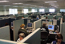 - Call Center (trung tâm cuộc gọi): nhiều nhân viên ngồi bên điện thoại để trả lời các cuộc gọi của khách hàng. Những khách hàng sử dụng điện thoại di động (ĐTDĐ) trong nước có lẽ đã quen thuộc với hình ảnh Call Center của Vinaphone, Mobifone. |