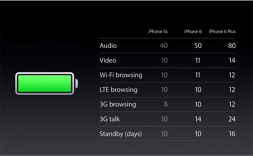 Thời lượng pin mặc dù không phải là điểm yếu của iPhone 6, nhưng nhìn chung nó chỉ ở mức trung bình (chiếc iPhone 6 Plus với kích cỡ lớn hơn, tất nhiên, cho thời lượng pin tốt hơn iPhone 6). Theo một số đồn đoán, Apple sẽ trang bị cho iPhone mới cáp USB-C để phục vụ việc sạc pin, tuy nhiên, cũng có tin đồn nói rằng Apple sẽ hỗ trợ sạc không dây - một tính năng đã có trên Apple Watch và đã được Samsung sử dụng cho cả Galaxy S6, S6 Edge.