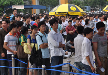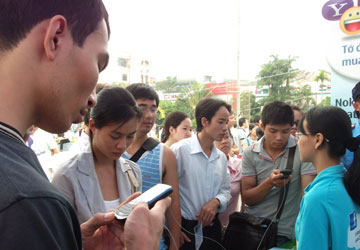 Sáng 8/8, hàng ngàn người đã đổ xô đến Trung tâm Triển lãm Giảng Võ (Hà Nội) để xếp hàng mua chiếc điện thoại wifi Nokia C3 với giá rẻ hơn 500.000đ so với giá bán chính thức.