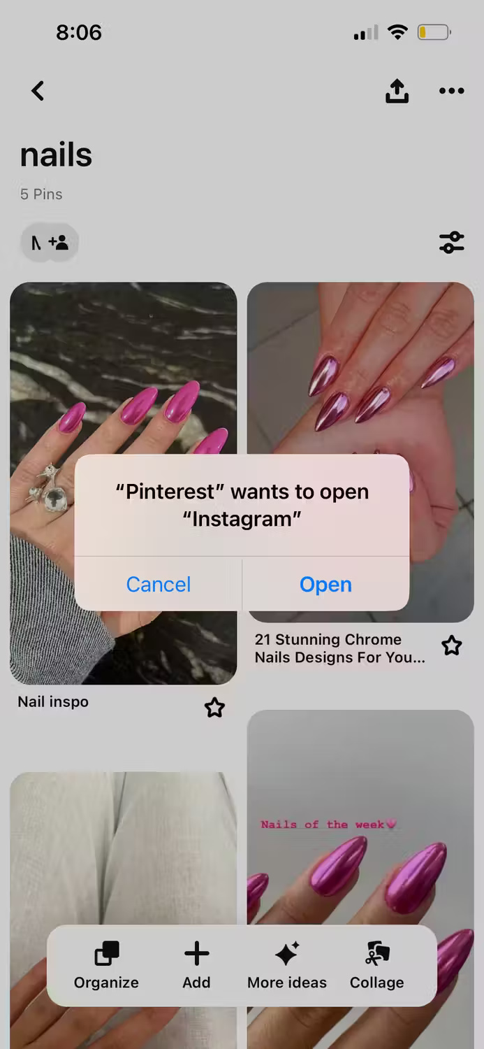 Instagram và Facebook có xu hướng hạn chế khả năng hiển thị nội dung Reels từ các nền tảng khác như Pinterest, vì vậy tốt hơn hết bạn không nên đăng nội dung đó dưới dạng Reel. Board Pinterest cũng không hoàn toàn phù hợp như các bài đăng TikTok thông thường, vì các thư viện ảnh đã phổ biến trên TikTok.