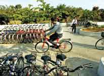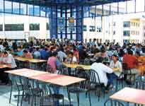 Phương tiện đi lại phổ biến nhất ở trung tâm công nghệ cao này chính là xe đạp | Cafeteria của Campus luôn đông đúc học viên và nhân viên vào các giờ nghỉ ăn trưa và ăn chiều |