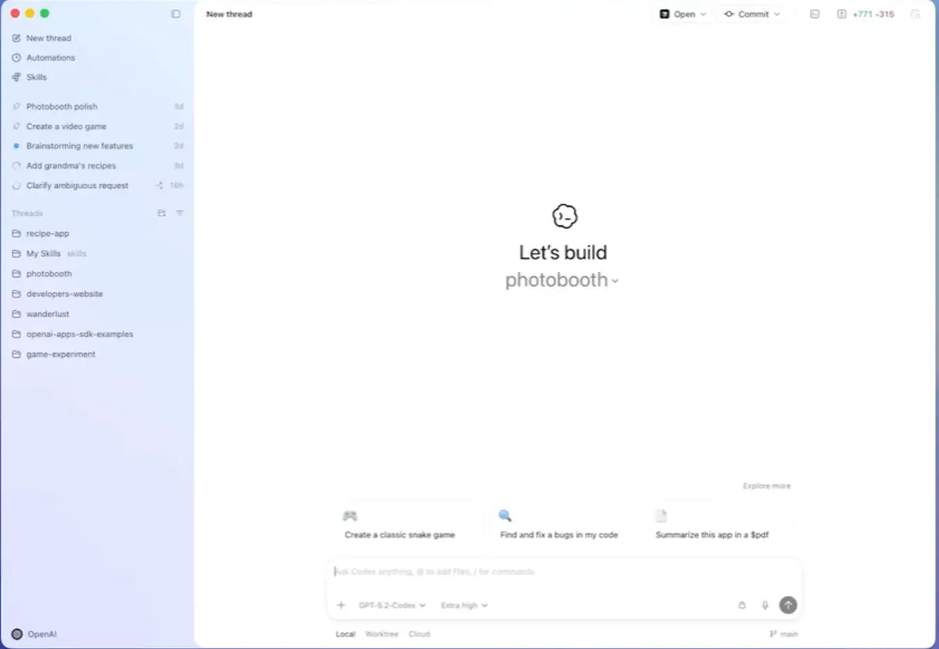 Hôm nay, OpenAI chính thức phát hành Codex, công cụ lập trình dựa trên ChatGPT, dưới dạng ứng dụng native cho macOS. Trước đó, người dùng muốn trải nghiệm Codex thường phải “lách luật” bằng nhiều cách khác nhau, phổ biến nhất là sử dụng qua giao diện dòng lệnh (CLI) trên web.