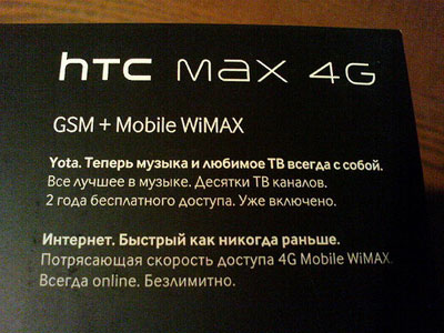 Max 4G là chiếc di động đầu tiên hỗ trợ kết nối GSM lẫn WiMax, máy có màn hình rộng 3,8 inch, giống HTC Touch HD nhưng camera là 3,2 Megapixel.