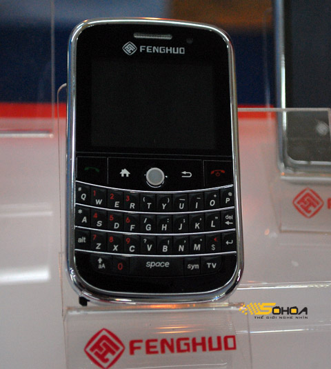 | Fenghuo bên cạnh các mẫu hai SIM hai sóng bình thường, còn trưng bày chiếc điện thoại "nhái" BlackBerry Bold. |