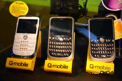 | Bên cạnh các nhà sản xuất Trung Quốc, Ấn Độ, gian hàng Q-Mobile sặc sỡ hơn với hàng chục mẫu điện thoại QWERY với thiết kế kiểu BlackBerry... |