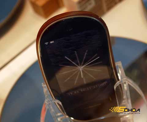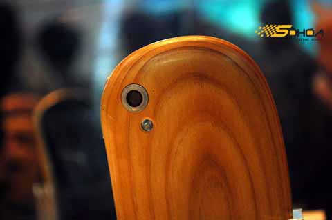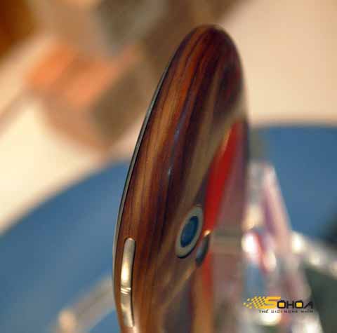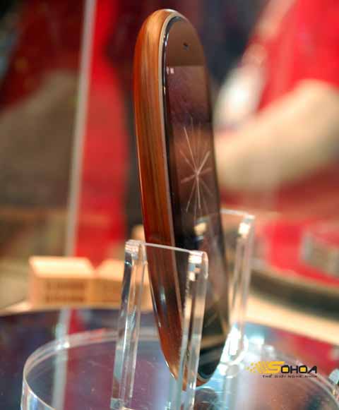 Mẫu di động vỏ gỗ của DoCoMo xuất hiện tại Vietnam Comm 2009 thu hút sự chú ý nhiều người bởi kiểu dáng mới mẻ.