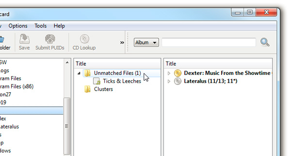 Như ví dụ tại đây, chúng ta có 2 album và sẽ thực hiện luôn một lần. Hãy kéo thả thư mục album chính vào trong phần Unmatched Files:
