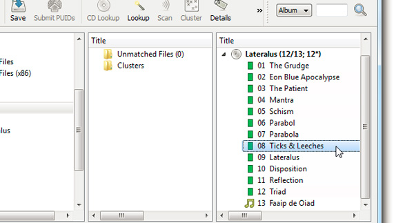 Và ngay lập tức, Picard sẽ tiến hành xác định, phân loại 2 album này. Đầu tiên là OST của Dexter – được hiển thị với biểu tượng chiếc đĩa màu vàng, có nghĩa là đã hoàn toàn được xác định. Album thứ 2 là Lateralus của Tool, với biểu tượng chiếc đĩa màu bạc, và thông tin đi kèm chỉ ra album này thiếu 2 ca khúc. Tiếp tục nhấn chuột vào album Lateralus và Lookup: