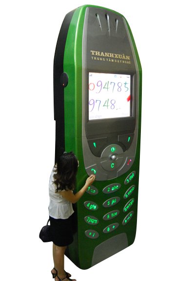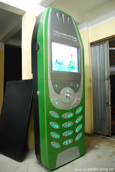 Đó là chiếc điện thoại do nhóm kỹ sư người Việt sản xuất có kích thước lớn hơn so với kỷ lục Guiness thế giới. Nó có khối lượng 302kg, cao 3m2, rộng 1m6 và sâu 46cm.