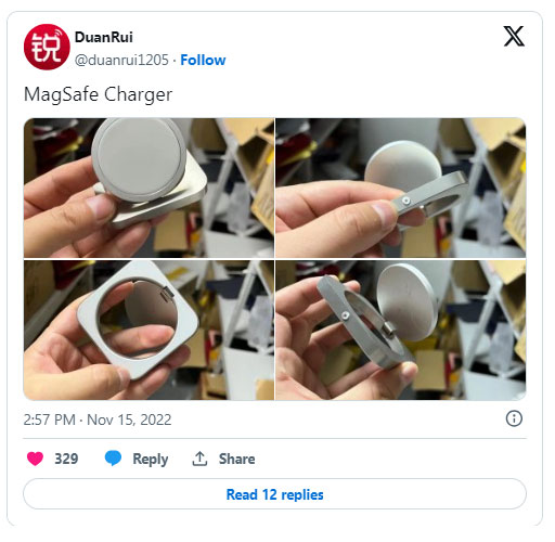 Mặc dù AirPower là một trong những ví dụ rõ ràng nhất về việc Apple thử nghiệm sạc không dây trước khi đưa MagSafe lên iPhone, nhưng nó không phải là ví dụ duy nhất. Vào tháng 11 năm 2022, một số người dùng đã đăng trên X (trước đây là Twitter) bức ảnh về một thứ trông giống như bộ sạc chưa được phát hành dành cho các thiết bị Apple.