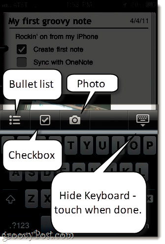 Những file note này sẽ tự động được lưu lại, nhưng nếu bạn muốn làm việc khác trong khi đang soạn thảo, hãy nhấn nút ở phía trên bên phải để ẩn bàn phím: