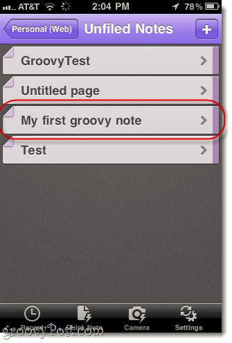 Để quay trở lại, chỉ cấn nhấn nút ở phía trên bên trái màn hình (ở đây là Unfiled notes). Như các bạn có thể thấy, file note vừa tạo của chúng ta đã được lưu trong mục Personal (Web) của Unfiled Notes: