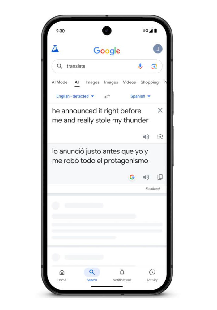 Google đang bắt đầu triển khai loạt tính năng mới dựa trên Gemini cho cả Search lẫn ứng dụng Google Dịch. Theo hãng, AI của họ hiện có thể mang lại bản dịch tự nhiên và chính xác hơn đối với những cụm từ mang nhiều sắc thái nghĩa, thay vì dịch sát từng chữ như trước. Điều này đặc biệt hữu ích với tiếng lóng và các cách nói đời thường, vốn thường bị Google Dịch “hiểu sai” hoặc diễn đạt khá gượng ép.