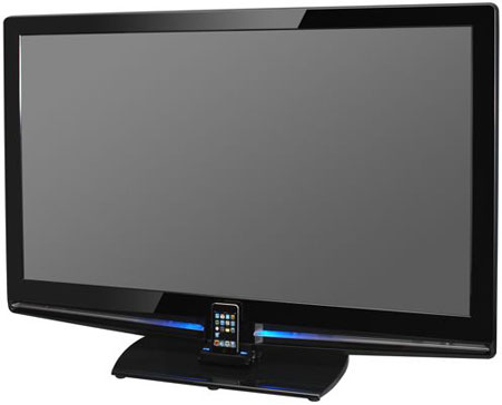 HDTV Teledock của JVC là mẫu TV mỏng có chân đế màn hình được thiết kế tích hợp thêm một bộ dock dành cho máy iPod và điện thoại iPhone.