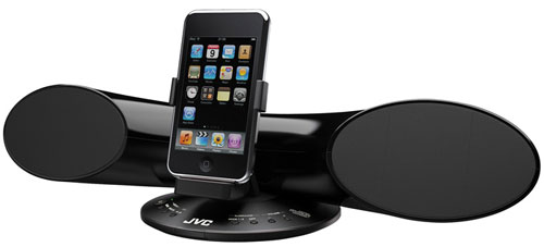 JVC vừa giới thiệu hệ thống loa có đế kết nối dành cho iPod mang một thiết khá đặc biệt. Sản phẩm S-SR3 có thể giữ được iPod ở cả chiều dọc để nghe nhạc hoặc chiều ngang cho việc xem video một cách dễ dàng.