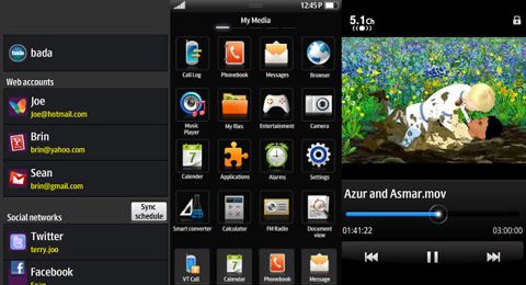 | Sau khi công bố, những hình ảnh về giao diện Bada của Samsung cũng xuất hiện. Bada hứa hẹn là một trong số những nền tảng chính của nhà sản xuất Hàn Quốc năm tới. Có thể thấy, hệ điều hành này chú trọng vào màn hình chạm, hỗ trợ giải trí, kết nối mạng xã hội mạnh mẽ. |