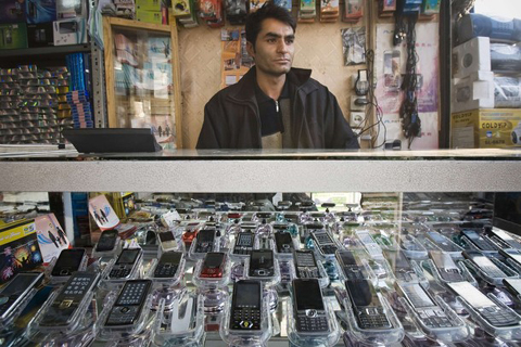 Một người đàn ông bán di động tại Herat, Afghanistan. Dù chiến tranh, nhưng đây là một trong số quốc gia có số người dùng di động tăng trưởng nhanh. |