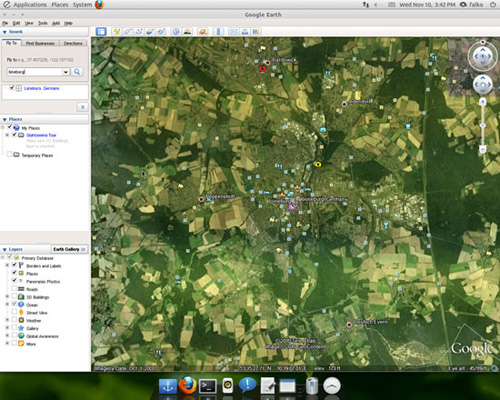 Với những phiên bản Ubuntu trước đó, nhà phát triển đã tích hợp sẵn gói *.deb của Google Earth của trong repository của Medibuntu, nhưng lại không có trong Ubuntu 10.10 - Maverick Meerkat. Để khắc phục điều này, chúng ta sẽ phải tự xây dựng và biên dịch gói cài đặt của Google Earth. Sử dụng Terminal (Applications > Accessories > Terminal) và gõ lệnh sau: