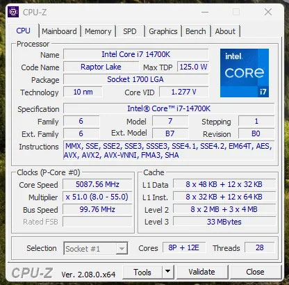 Thông số kỹ thuật CPU-z Core i7-14700K:
