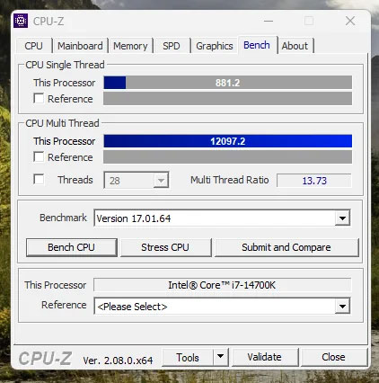 Benchmark CPU-z Core i7-14700K: